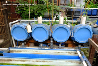 Growbed pertama berupa ember diameter 30 cm dengan sistem aliran atas dan growbed ke-2 berupa box ibc dengan sistem pasang surut. Kedua growbed berasal dari sumber yang sama yaitu kolam ibc yang sebagian besar dihuni ikan lele dan gurame.